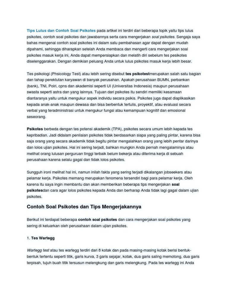 Oke pada postingan kali ini saya akan memberikan info mengenai cara mengerjakan tes wartegg pada psikotes seleksi penerimaan calon karyawan baru. Atau bisa juga disebut dengan tes . Untuk membantu anda lulus psikotes kerja, . Terutama bagi yang sudah pernah . Kecerdasan, kepribadian dan juga sikap atau cara kerja.