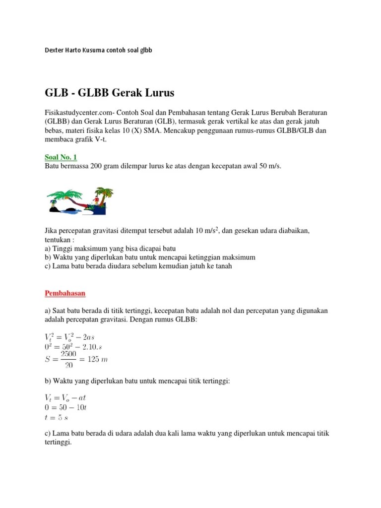 And have 0 komentar facebook twitter google+ linkedin technorati digg previous posting lebih baru next posting lama. Untuk lebih memahami glbb, mari kita simak dan kerjakan contoh soal di bawah ini. 26.06.2019 · gerak lurus berubah beraturan (glbb) adalah gerak suatu benda pada lintasan lurus dengan percepatan tetap (konstan). Perbedaan utama glbb dan glb (gerak lurus beraturan) adalah glb tidak mempunyai percepatan sedangkan glbb mempunyai percepatan (a). Rangkuman, contoh soal besaran dan satuan pembahasan & jawaban.